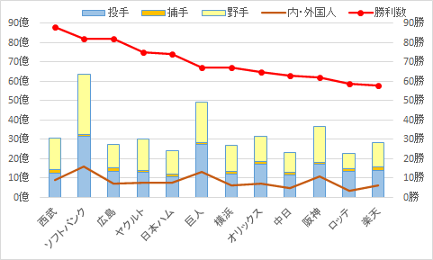2017年 チーム年俸と勝利数