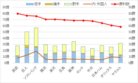 2021年 チーム年俸と勝利数
