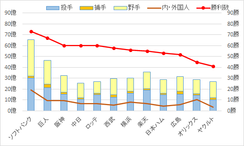2019年 チーム年俸と勝利数