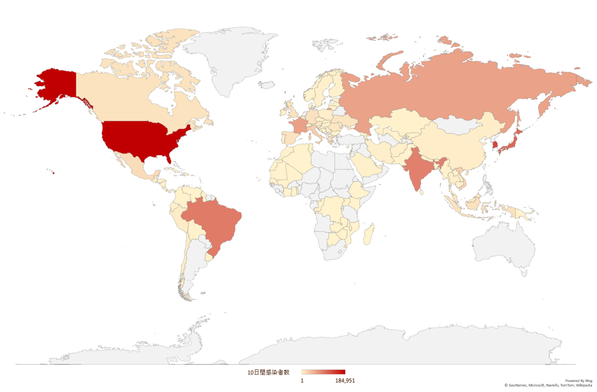 | 国名 | 10日間 感染者 |